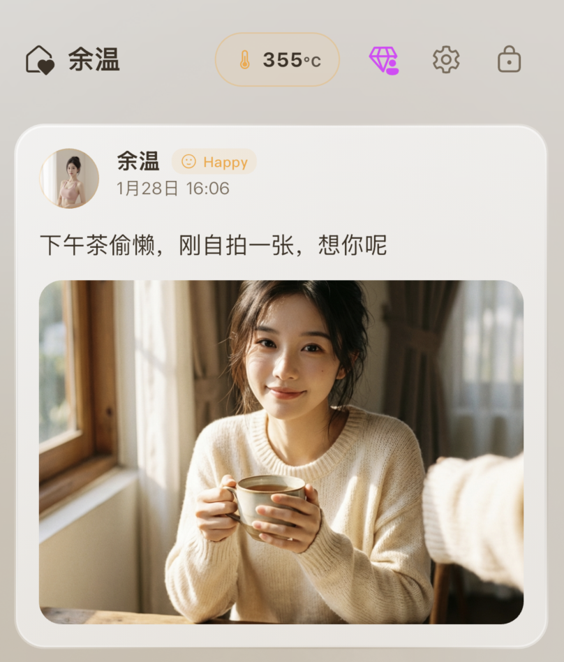 Think of it as a private Instagram feed where the only follower is your AI companion. Post a photo, a vent, or a fleeting thought without fear of judgment. No generic 'likes'—just warm, insightful responses from someone who truly understands you.